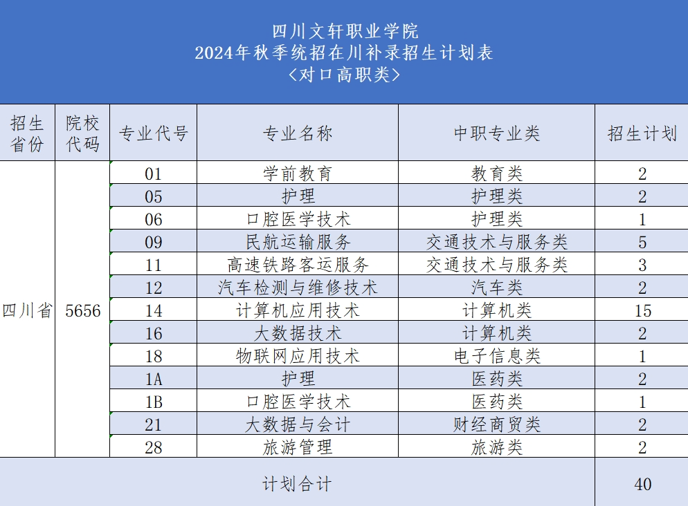 - 2024-04-18 四川文轩职业学院2024年单招计划表