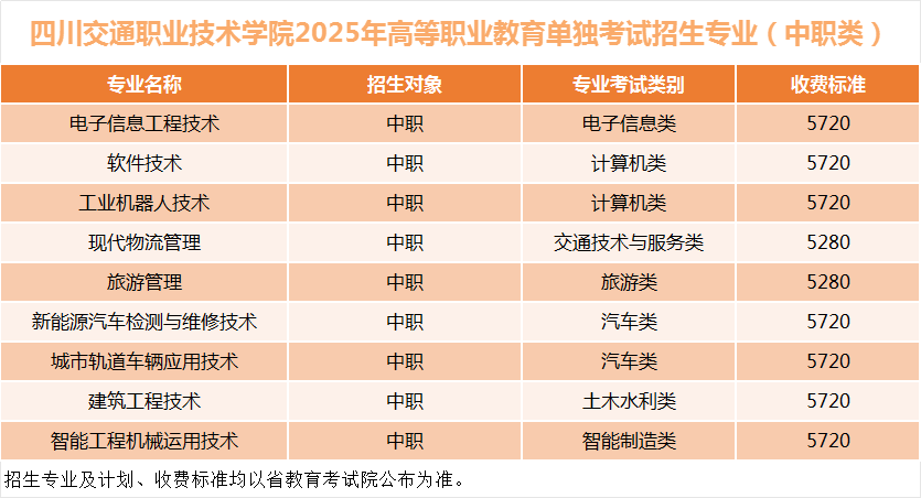 - 2025-05-29 四川交通职业技术学院2025年高职单招招生计划