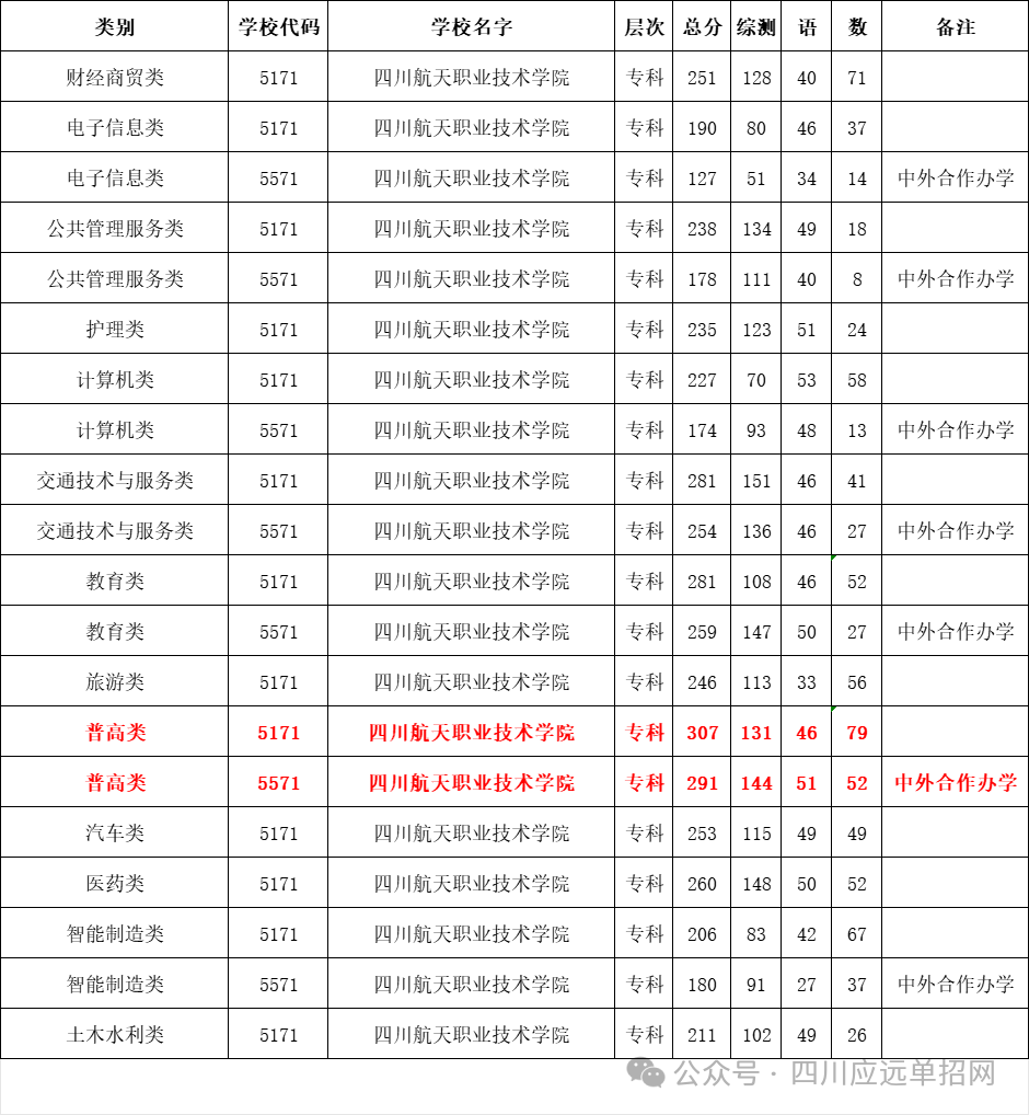 - 2025-05-30 2024年四川航天职业技术学院单招最低录取分数线