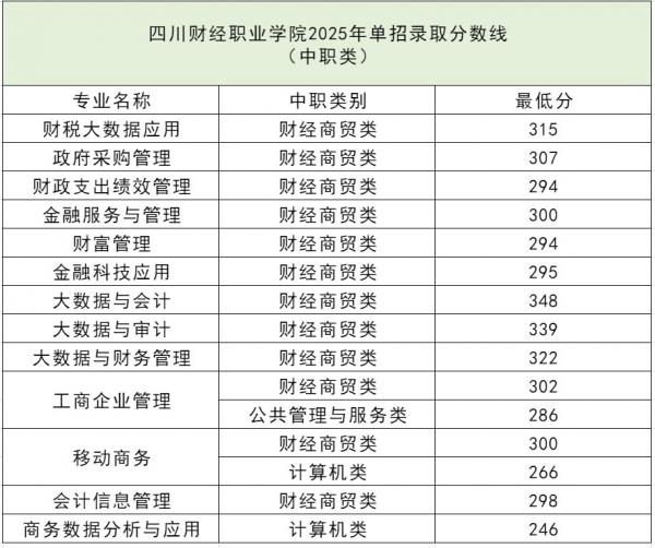 - 2024-09-07 单招多少分能上四川财经职业学院(公办)【附2024年四川财经职学院单招录取分数线】