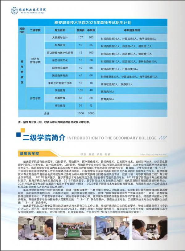 - 2025-06-06 雅安职业技术学院2025年单招计划和单招专业