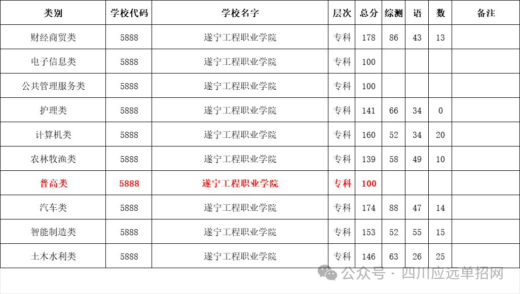 - 2024-08-14 遂宁工程职业学院四川省对口高职征集志愿计划来了,招生代码5888