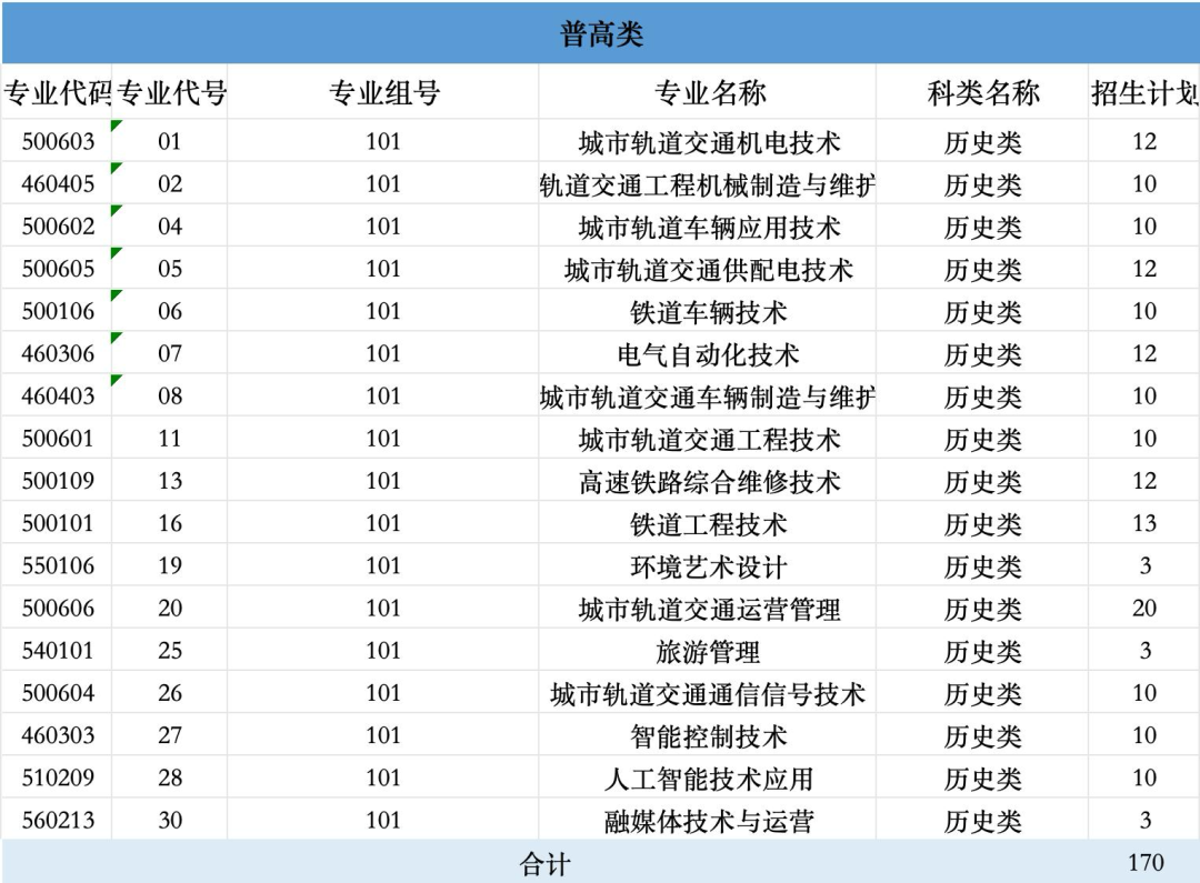 - 2022-07-20 德阳城市轨道交通职业学院2022年单招专业计划表