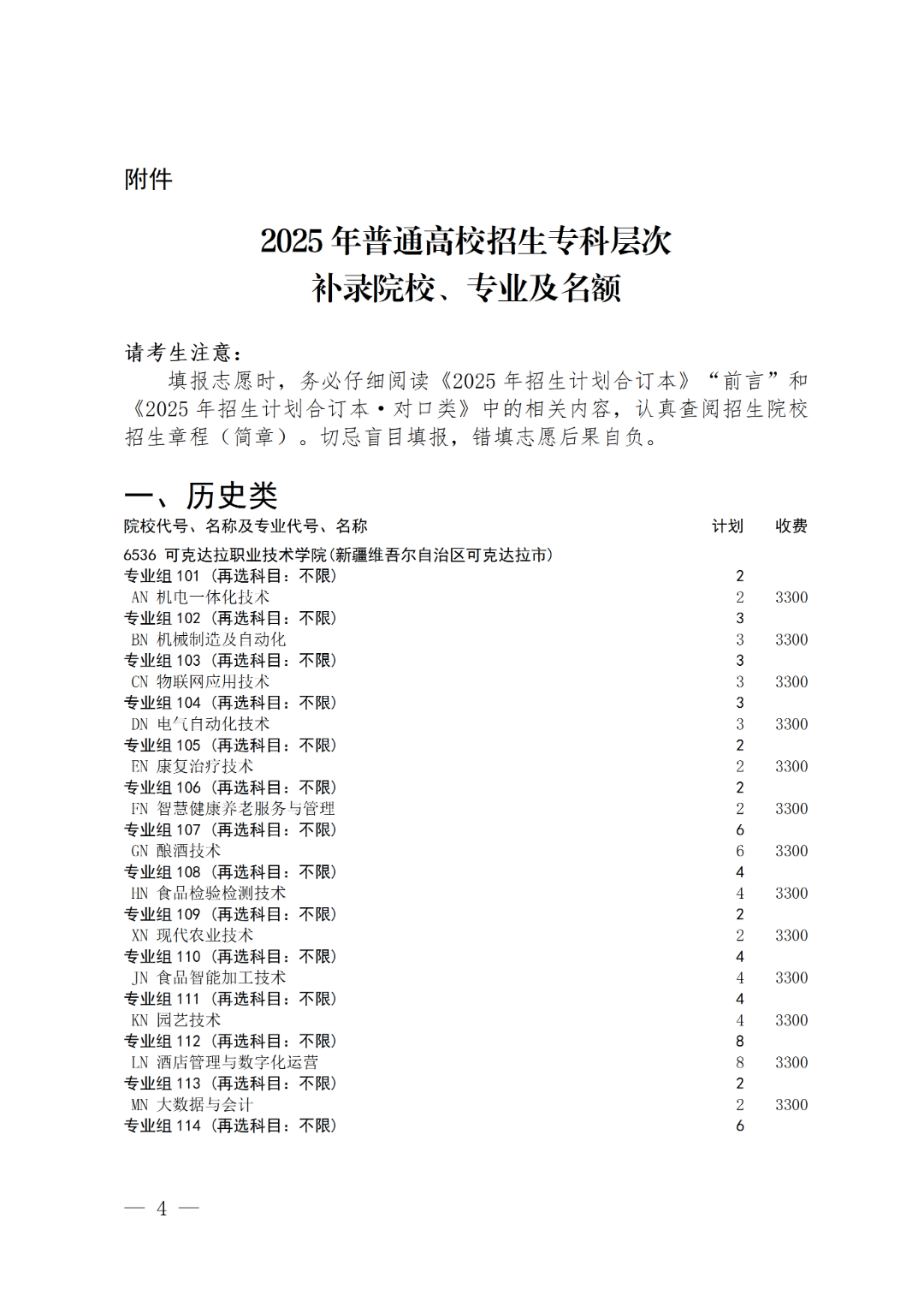 - 2025-09-20 2025年四川省高职专科层次补录计划——历史类