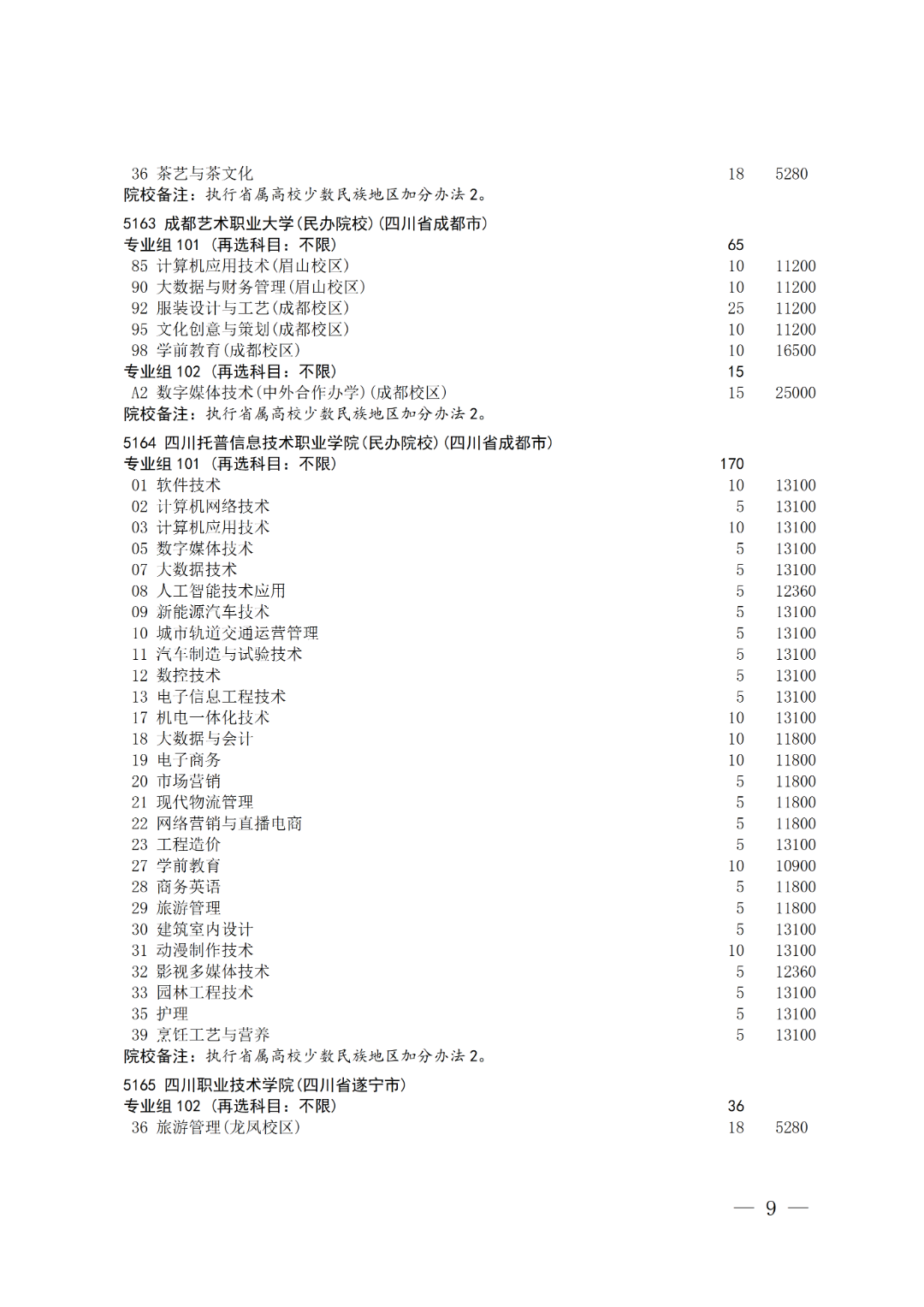 - 2025-09-20 2025年四川省高职专科层次补录计划——艺术类