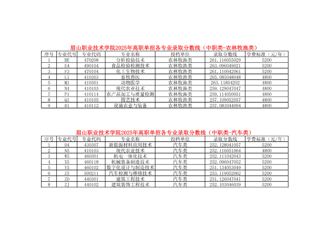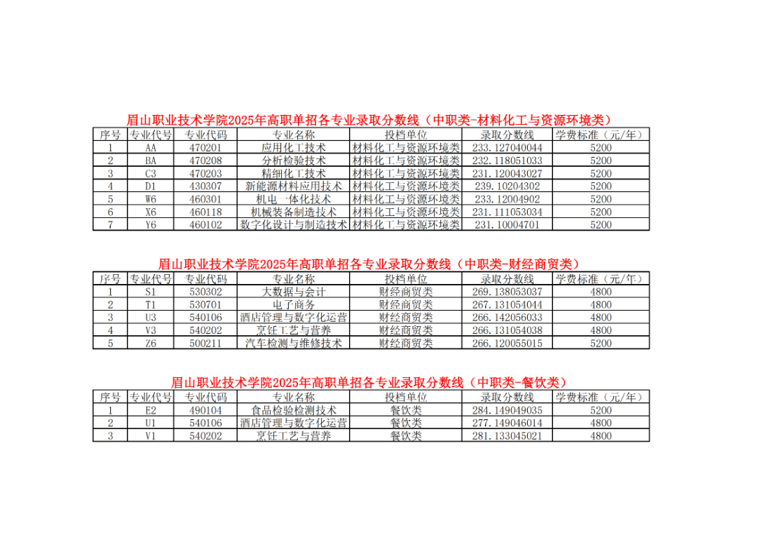 - 2025-09-23 眉山职业技术学院2025年单招录取分数线(分专业)