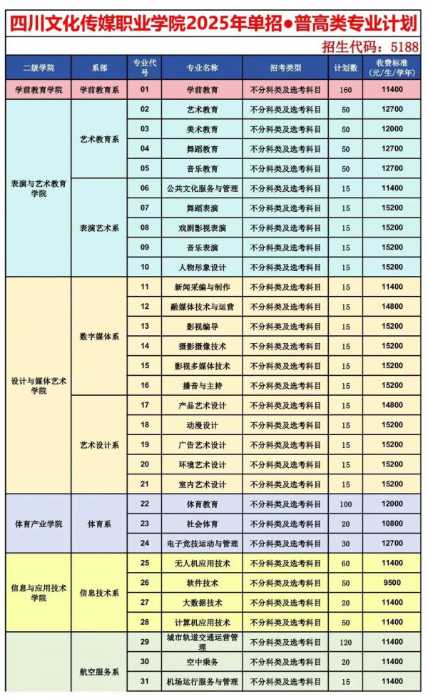 - 2025-09-27 四川文化传媒职业学院2025年单招计划、专业