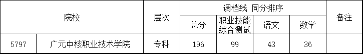 我省2024年高职单招普高类录取工作已正式开展,广元中核职业技术学院2024年高职单招录取调档线新鲜出炉,一起来看一看吧!
