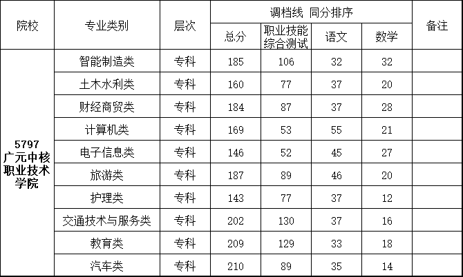 - 2025-10-04 广元中核职业技术学院2024年高职单招录取调档线