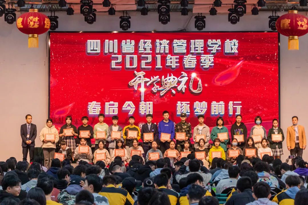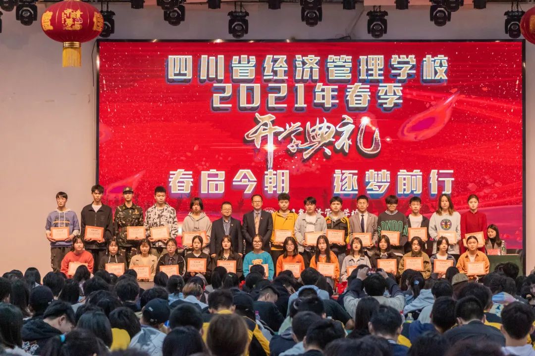 3.16日上午10点,四川省经济管理学校隆重举行“春启今朝 逐梦前行”2021年春季学期开学典礼。校长吴勇、党支部书记杨友明、校长助理张天锋、校长助理兼学生处处长宋连刚等领导出席典礼。典礼由团委刘子豪老师主持。