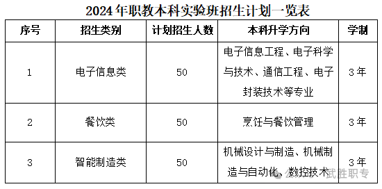 职教本科实验班计划招收应届初中毕业生150人,将开设智能制造类、电子信息类、餐饮类等相关专业。