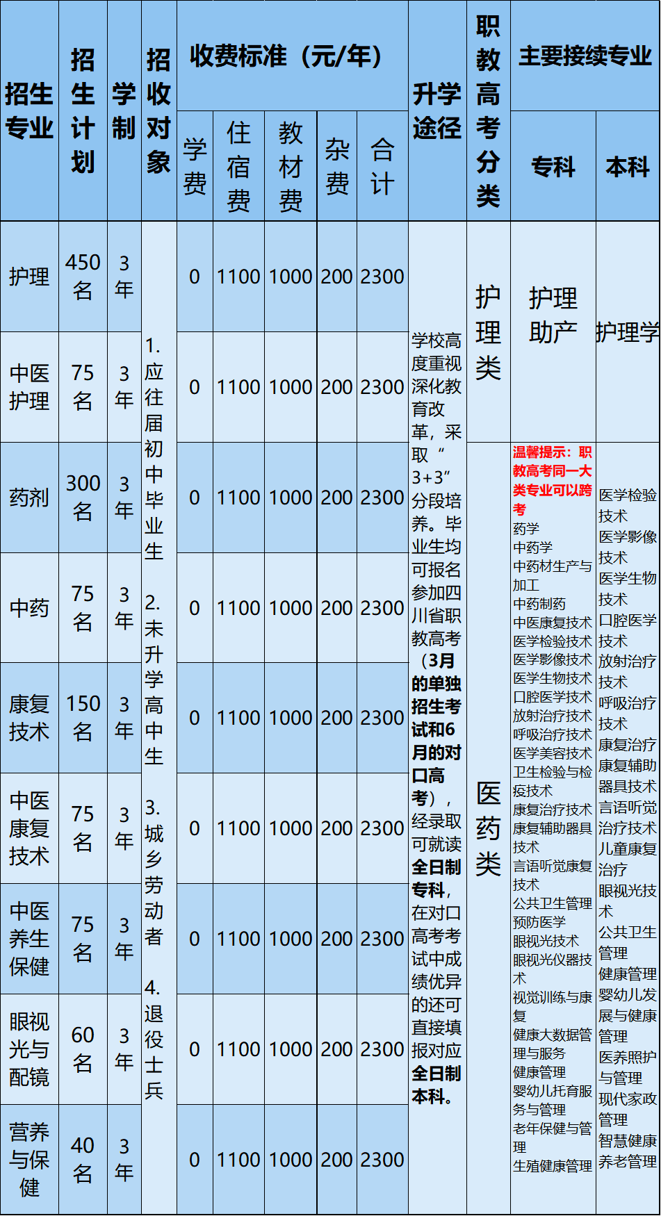 2. 护理专业升学就业存在身高要求,建议身高154cm以上填报;