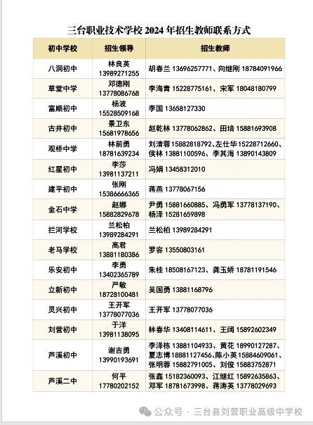 - 2024-01-01 三台县刘营职业高级中学校2024年招生办联系电话