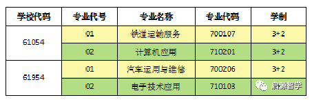 3+2 中高职衔接五年贯通培养招生专业