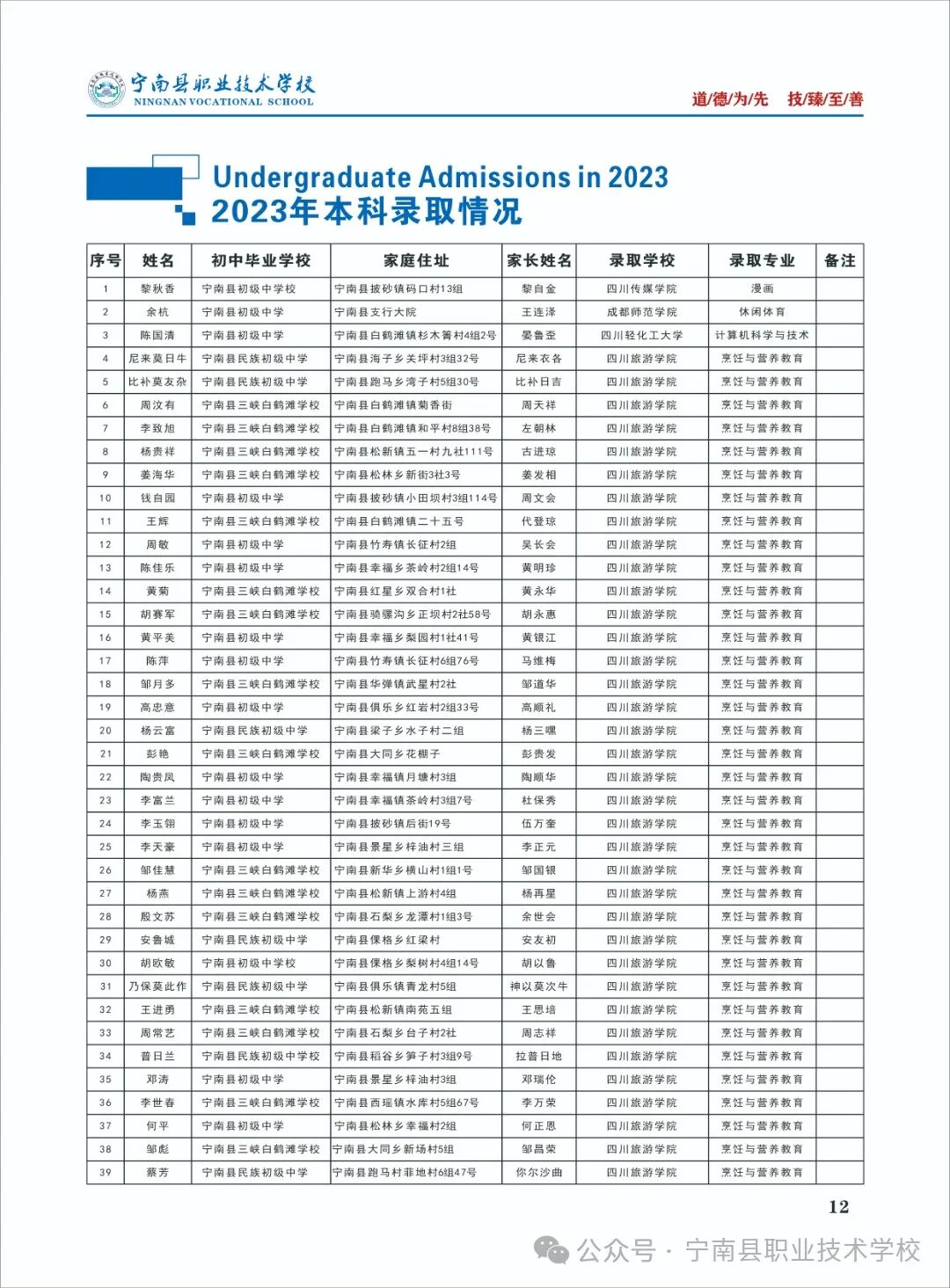 - 2023-12-30 宁南县职业技术学校2023年招生录取分数线
