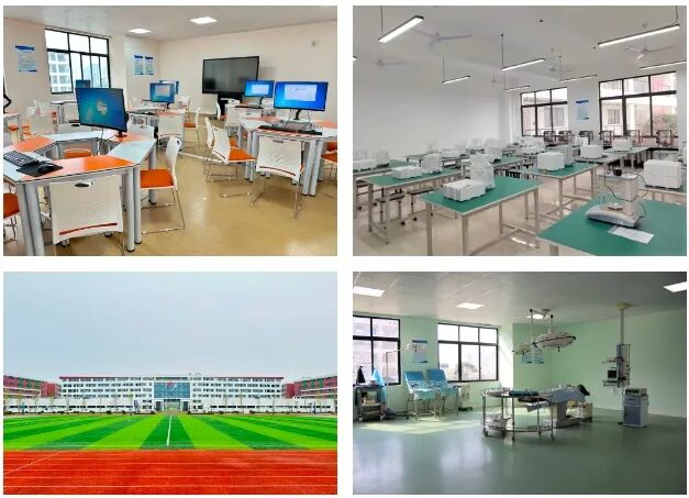 建有护理康复实训中心和药学化工实验中心,2万平方米的教学及实训大楼,4幢学生公寓,两个食堂;建有标准运动场、足球场、篮球场、羽毛球场、乒乓球场,充分满足学生学习和生活的需求。