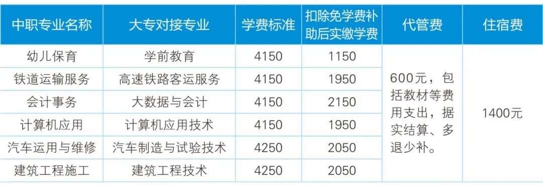 中职阶段 学生可享受免学费补助、国家助学金等五项政策扶持,最高31000元,详见下表:
