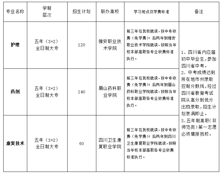1.中高职衔接五年贯通培养班(联办学校及招生计划以四川省教育考试院公布为准)