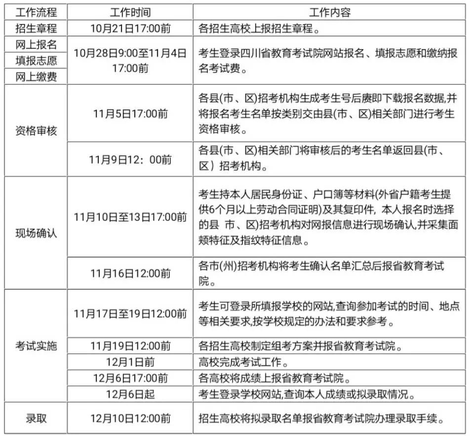 附:四川省2021年高职扩招专项工作招生考试及录取时间安排表