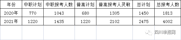 成都航空职业技术学院2021年单招普高计划1220人,实际报名2102人,中职计划1255人,实际报名人数为1435人。总计划2475人,总的报名人数3537人,淘汰率约为30.03%。相较而言,中职报名人数仅超180人,除去硬性淘汰的10%,仅有少数学生不能录取。想要报考成航的中职学生,可以参考!
