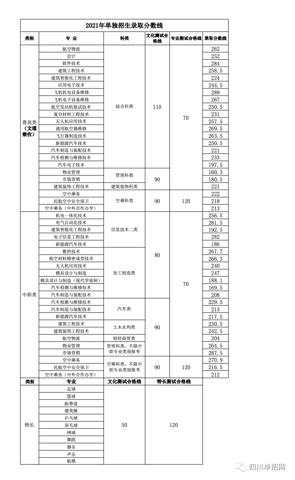 三、成都航空职业技术学院2021年单招录取分数线(点击放大图片查看)
