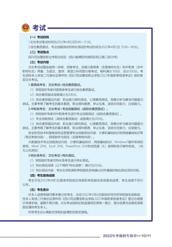 - 2022-07-25 四川司法警官职业学院2022年单招专业和招生计划