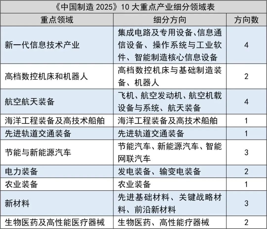 《中国制造2025》出台,明确了十大重点领域。