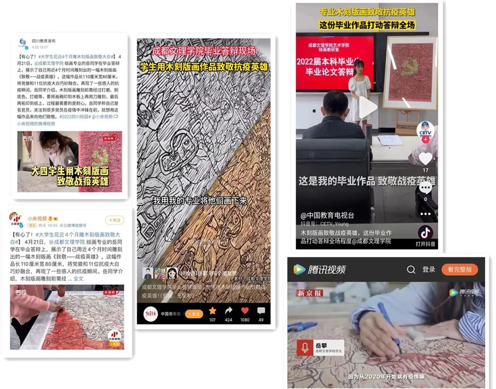▲艺术学院学子毕业作品《致敬—战疫英雄》获多家主流媒体报道