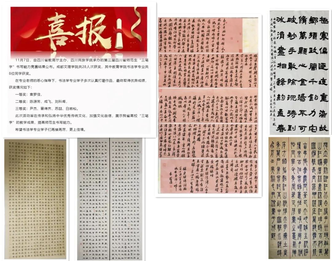 ▲教育学院书法学专业学子在第三届四川省师范生“三笔字”书写能力竞赛中荣获佳绩