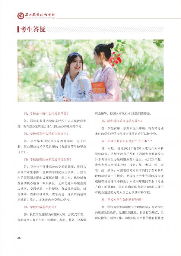 - 2025-02-26 眉山职业技术学院2025年单招简章