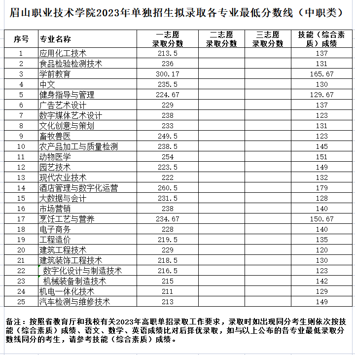 - 2023-06-03 眉山职业技术学院2023年高职单招各专业拟录取分数线公布