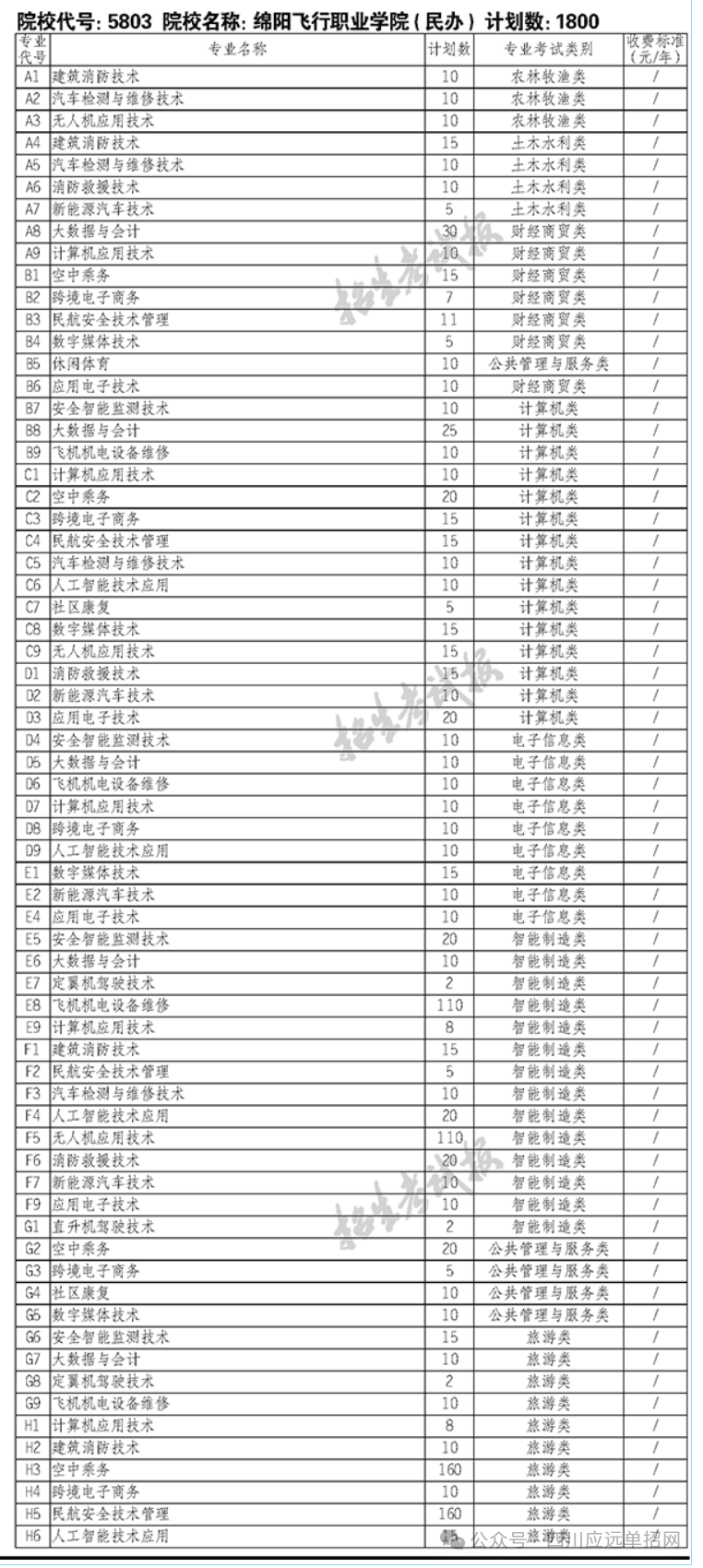 - 2024-04-16 绵阳飞行职业学院2024年单招计划表