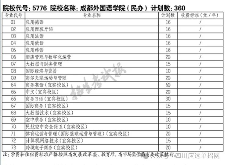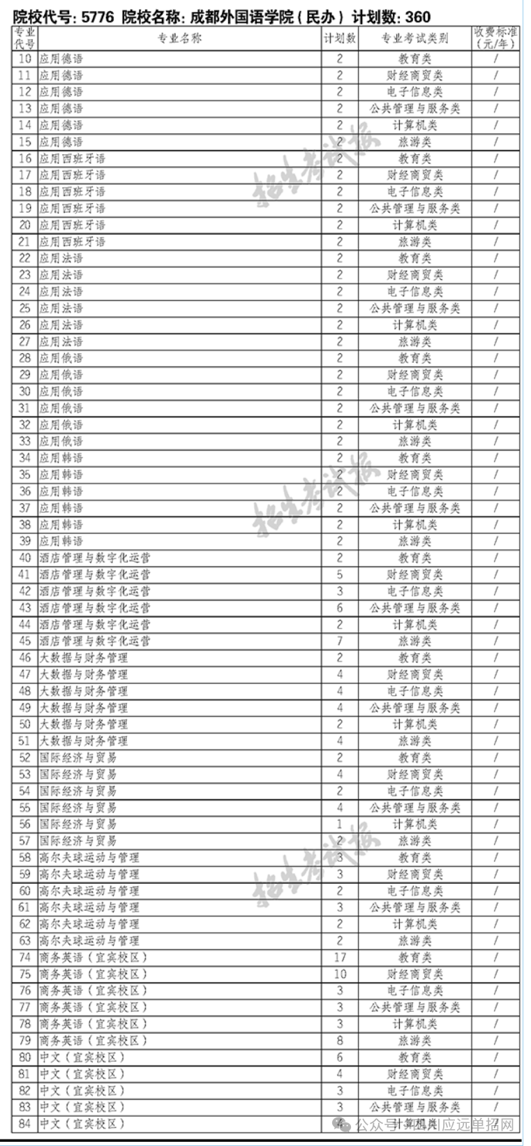 - 2024-04-18 成都外国语学院2024年单招计划表