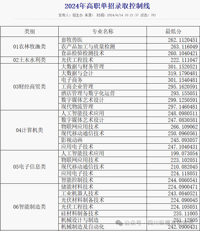 - 2024-08-13 南充科技职业学院2024年单招最低录取分数线