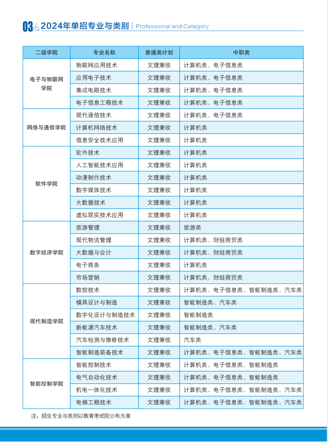 - 2024-04-17 四川信息职业技术学院2024年单招专业和单招计划