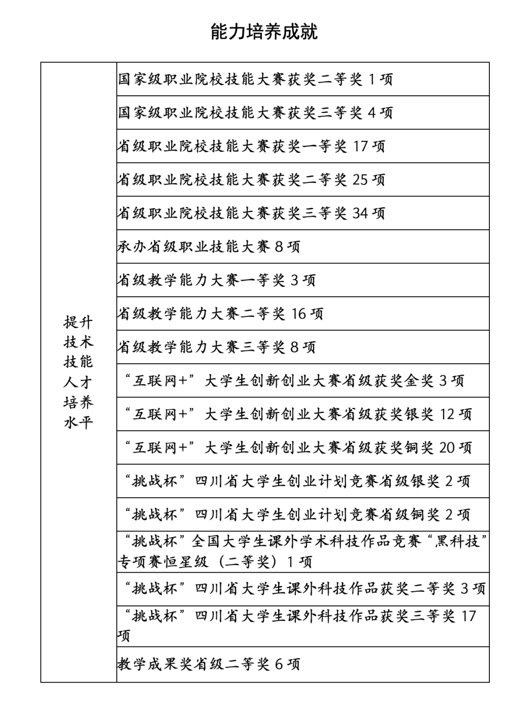 专业对接产业,培养信息人才:学院确立了“以工科类专业为主体,以电子信息类专业为主导”的专业发展定位,近年来,围绕电子信息和新一代信息技术产业加快发展,陆续开办了大数据技术与应用、工业机器人技术、移动通信技术专业、物联网应用技术、信息安全与管理、人工智能技术服务、VR虚拟现实应用技术等专业。现有中央财政支持的提升专业服务能力专业2个,教育部现代学徒制试点专业2个,四川省“高等教育质量工程”特色专业1个,省级教改试点专业1个,省级重点专业3个,省级示范专业4个,省级现代学徒制试点专业5个。对接电子信息产业群,重点建设计算机与软件技术、电子信息与通信技术、数字媒体技术、智能设备与控制技术、现代装备与制造技术、汽车技术与服务、现代服务与管理七大专业群。重点培育信息安全与管理、物联网应用技术、工业机器人技术、智能控制技术、电子商务五个新兴专业(或方向)。