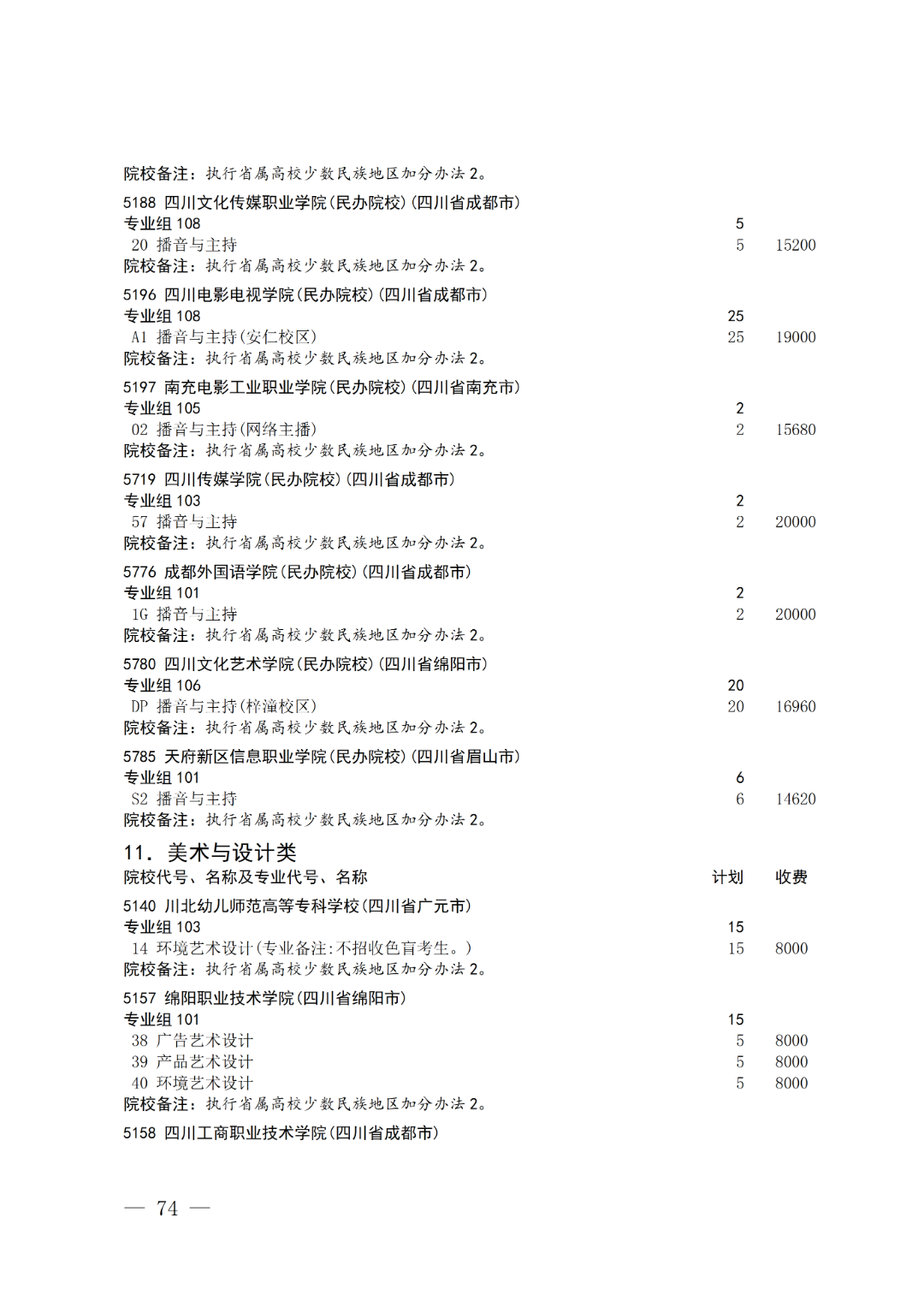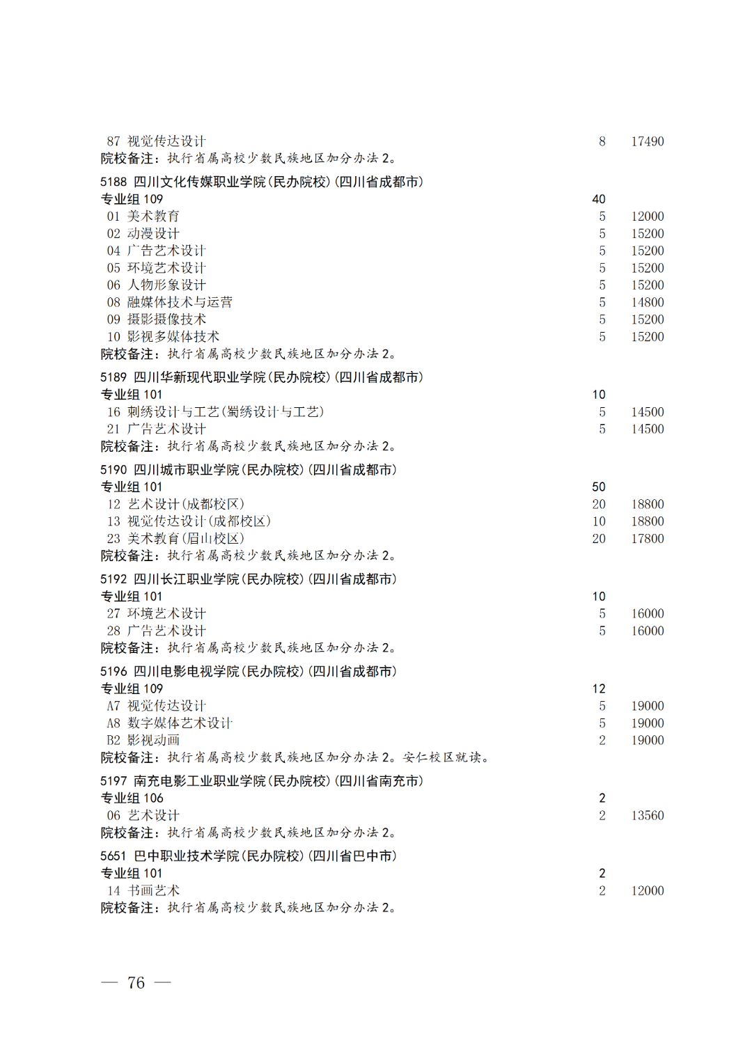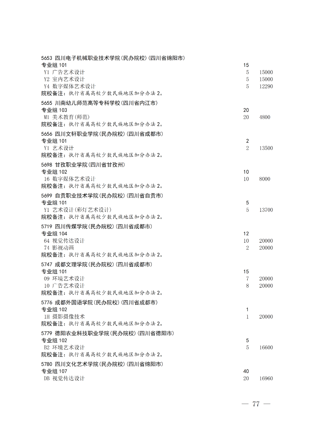 - 2025-09-20 2025年四川省高职专科层次补录计划——艺术类
