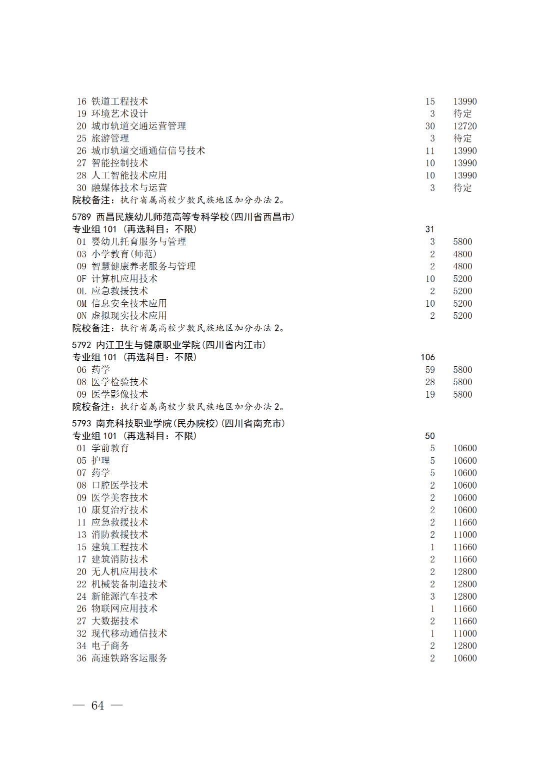 - 2025-09-20 2025年四川省高职专科层次补录计划——对口招生类