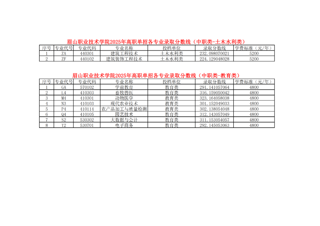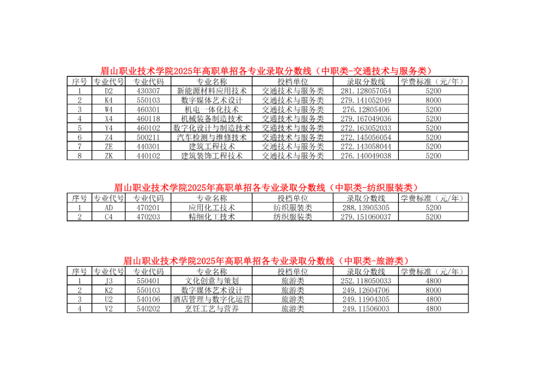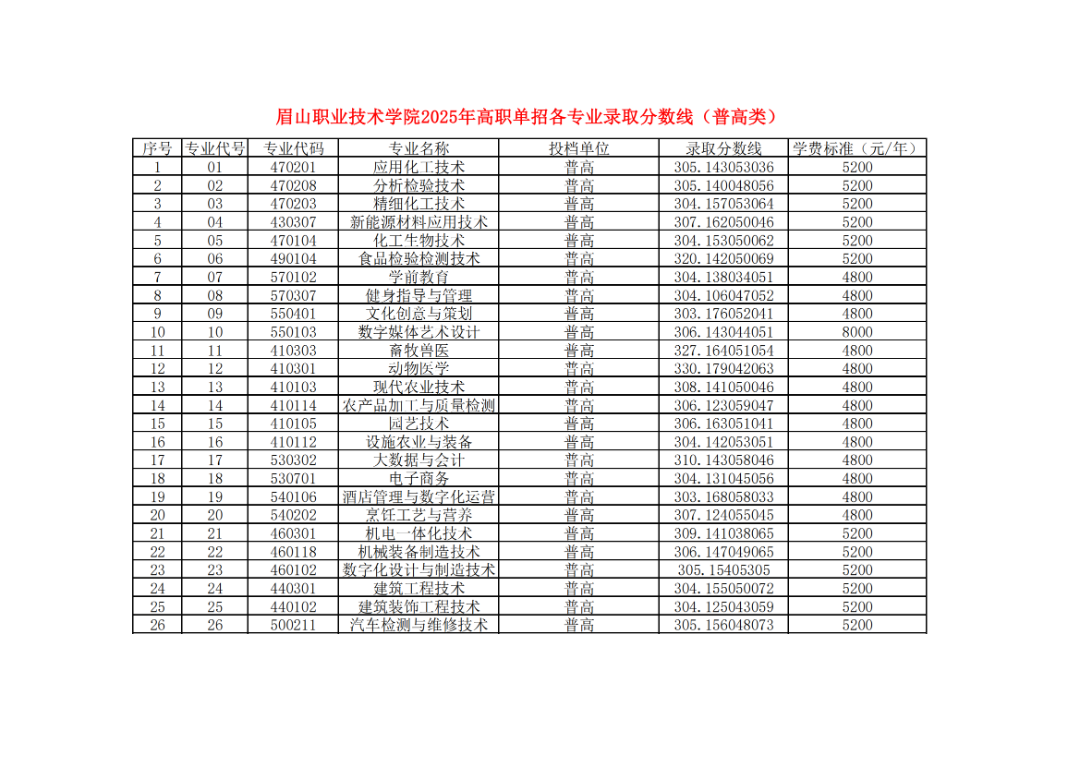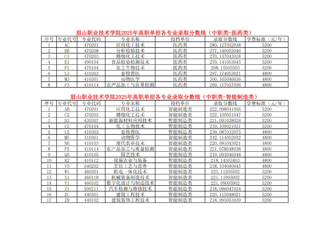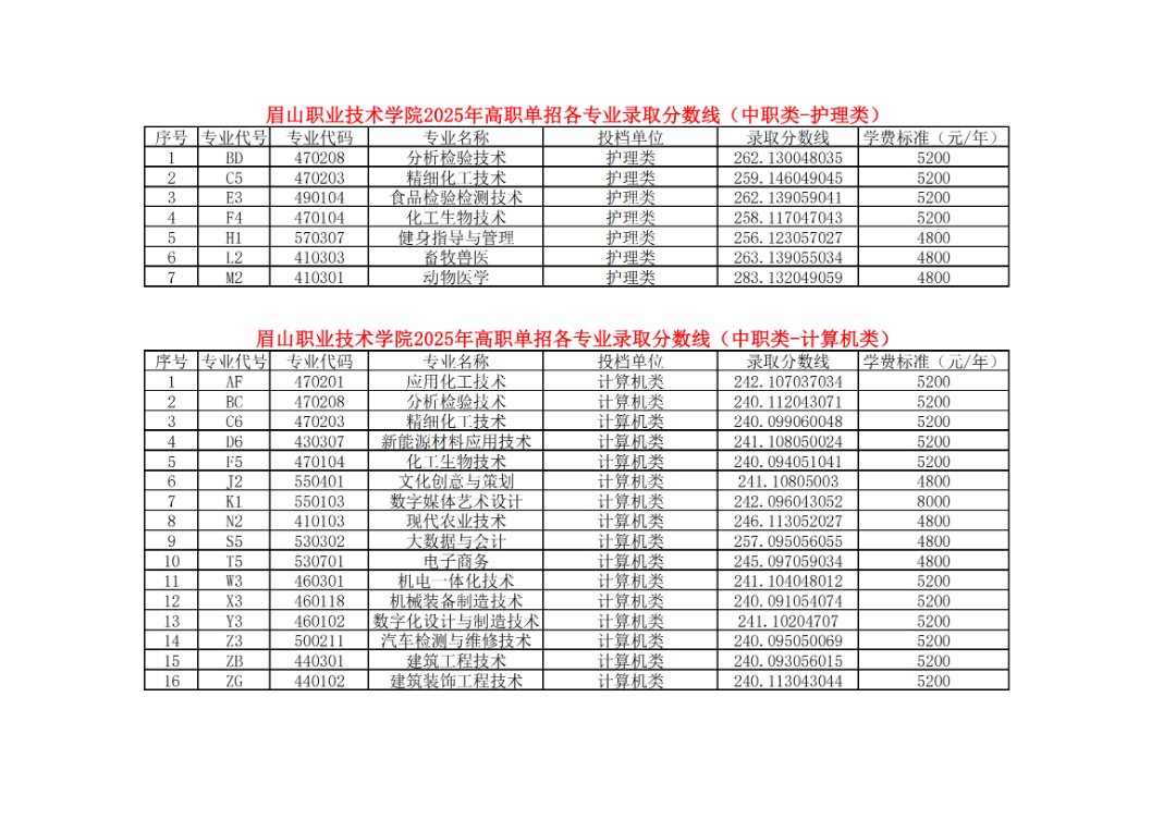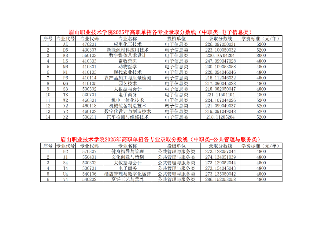- 2025-09-23 眉山职业技术学院2025年单招录取分数线(分专业)