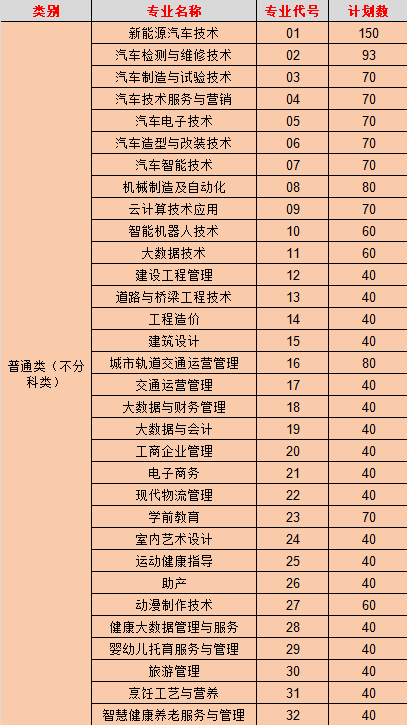 - 2022-07-25 四川汽车职业技术学院2022年单独招生计划表