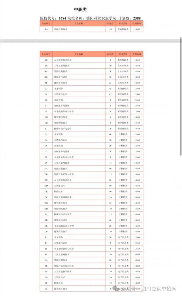 - 2025-09-30 德阳科贸职业学院2025年高职单招招生专业及计划