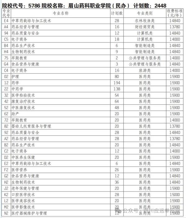 - 2024-04-18 眉山药科职业学院2024年单招计划表