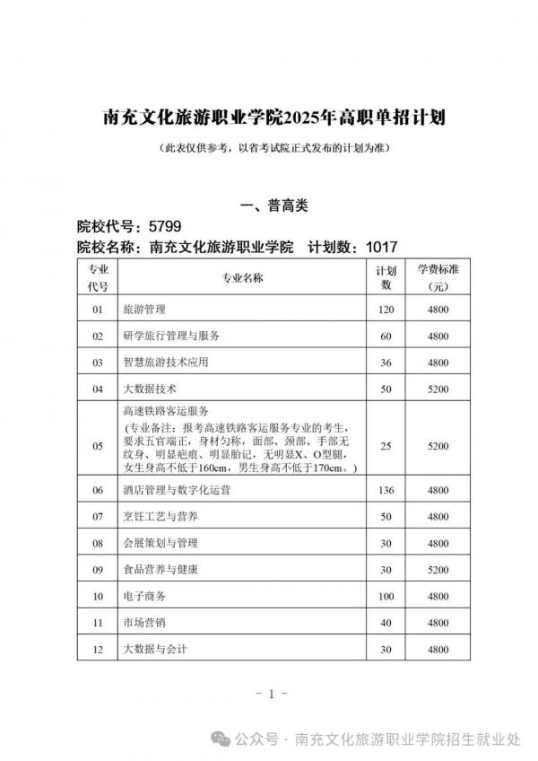 - 2025-10-05 2025年南充文化旅游职业学院单招计划、专业