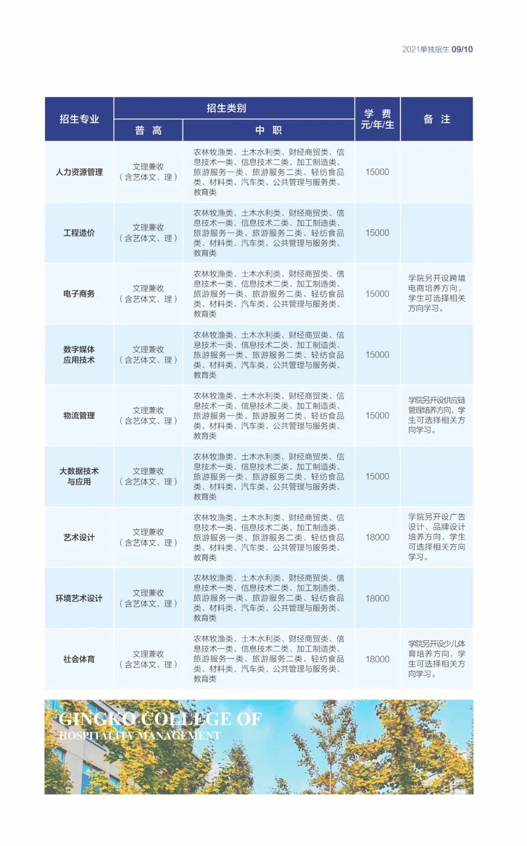 - 2021-09-13 成都银杏酒店管理学院2021年单独招生专业及招生计划表