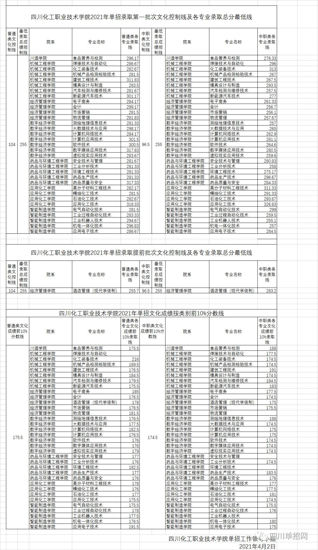 四川化工职业技术学院2021年单招录取分数线