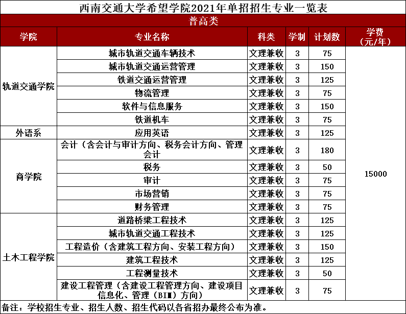 - 2021-09-13 西南交通大学希望学院2021年单独招生章程