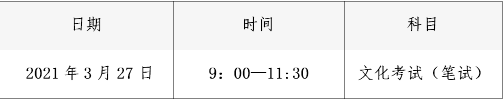 1.文化考试(笔试)时间为2021年3月27日9:00-11:30。