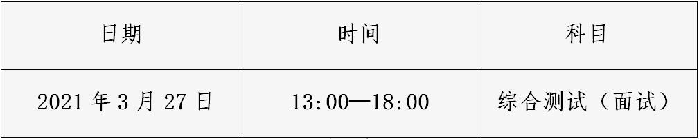 2.综合测试(面试)时间为2021年3月27日13:00-18:00。