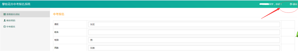 6、 点击页面右上角的“退出”按钮,可退出报名系统。