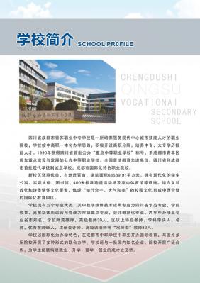 四川省成都市青苏职业中专学校,始建1968年,是四川省首批公办重点中等职业学校,四川省现代学徒制试点学校,国家法制教育先进学校。学校专业建设上以“内涵上做实、品质上做精、标准上做优、影响上做强”为目标,整合原有六大专业,建设有三大专业集群:教育与艺术专业集群、现代商务专业集群、社会云服务专业集群。学前教育、高星级饭店运营与管理、数字媒体三大专业为市级示范重点专业,教学成果省市知名。学校还与伊藤洋华堂、金苹果教育集团、壳牌集团等100多家著名品牌企业结成联盟,共建校外实训基地。